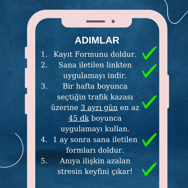 Bu proje, alanında yetkin profesyonel ruh sağlığı çalışanları tarafından geliştirilmiştir. İlk etapta “trafik kazası travması” olan kişiler ile çalışmaya başlanacaktır. Araştırmamızın katılım kriterlerine uyuyorsanız sizi tamamen gönüllü gerçekleşecek çalışmamıza katılmanız için davet ediyoruz: