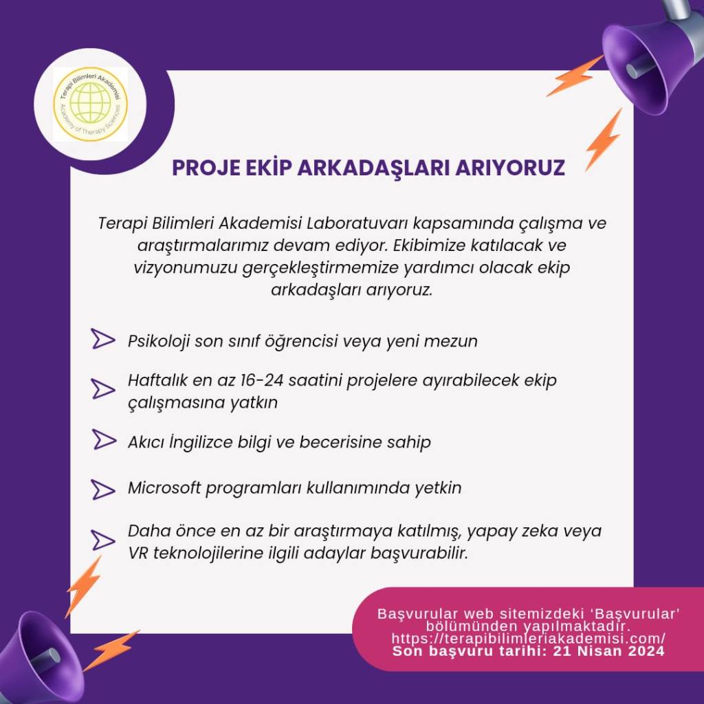 Terapi Bilimleri Akademisi Laboratuvarı ‘Proje Ekip Arkadaşı’ Başvurusu